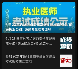 2021年吉林考點(diǎn)醫(yī)師資格實(shí)踐技能考試(朝醫(yī)執(zhí)業(yè)類別)成績(jī)查詢通知匯總