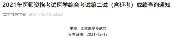 吉林考點(diǎn)轉(zhuǎn)發(fā)【2021年醫(yī)師資格考試醫(yī)學(xué)綜合考試第二試(含延考)成績(jī)查詢】通知