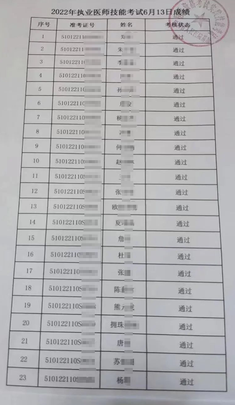 四川省人民醫(yī)院基地2022年醫(yī)師資格實(shí)踐技能考試成績(jī)公示(6月13日)