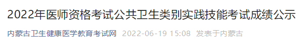 內(nèi)蒙古考區(qū)2022年醫(yī)師資格考試公共衛(wèi)生類別實踐技能考試成績公示(6月18日)