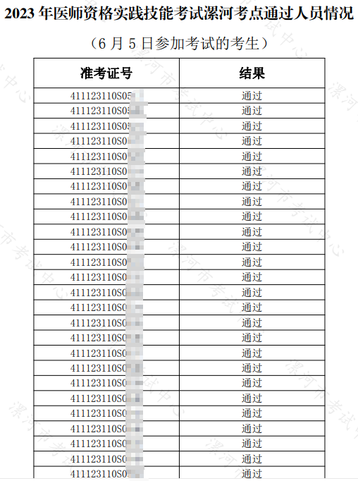 2023年6月5日醫(yī)師資格實(shí)踐技能考試漯河考點(diǎn)通過(guò)人員情況