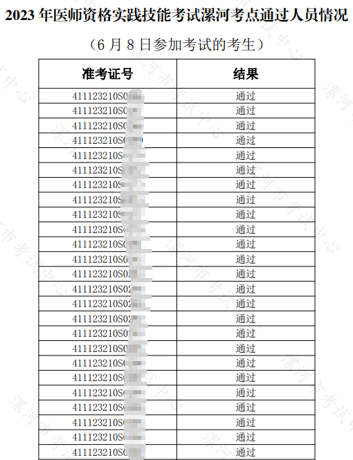 漯河市衛(wèi)生健康委員會公布了2023年醫(yī)師資格實踐技能考試漯河考點通過人員情況 (6月8日參加考試的考生),快來看看你是否通過考試,小編截取了部分成績公示內(nèi)容,相關(guān)考生可以查看通知原文,查看技能考試結(jié)果!最終成績以國家醫(yī)學(xué)考試網(wǎng)公布()為準(zhǔn),請考生提前了解!