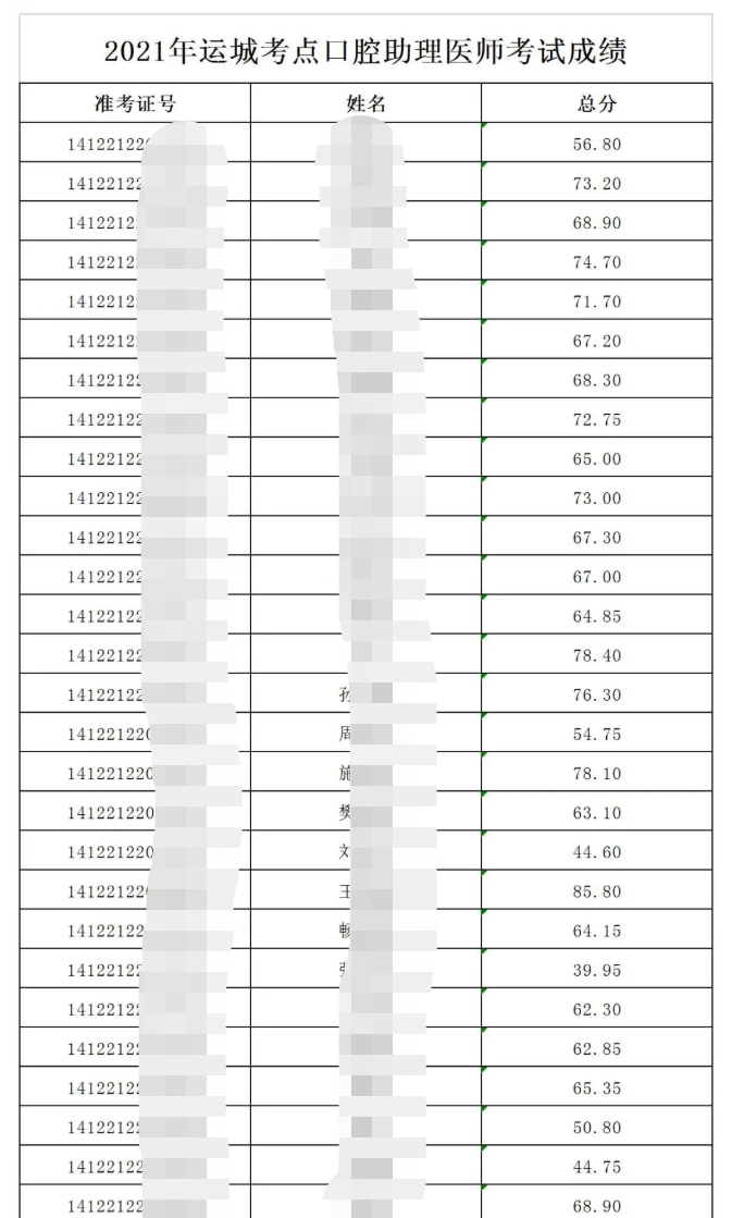 2021年全國醫(yī)師資格實(shí)踐技能考試運(yùn)城考點(diǎn)口腔助理醫(yī)師考試成績公示