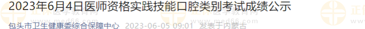內(nèi)蒙古包頭2023年6月4日醫(yī)師資格實踐技能口腔類別考試成績公示