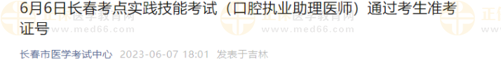 原文通知標(biāo)題:6月6日長春考點實踐技能考試(口腔執(zhí)業(yè)助理醫(yī)師)通過考生準(zhǔn)考證號