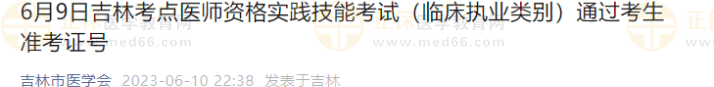 請參加6月9日吉林考點(diǎn)實(shí)踐技能考試臨床執(zhí)業(yè)類別的考生根據(jù)準(zhǔn)考證號查詢考試通過情況,最終考試成績以國家醫(yī)學(xué)考試網(wǎng)()公布為準(zhǔn)!