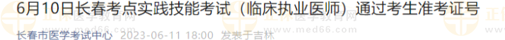 請參加6月10日長春考點(diǎn)實(shí)踐技能考試臨床執(zhí)業(yè)醫(yī)師的考生根據(jù)準(zhǔn)考證號查詢考試通過情況,最終考試成績以國家醫(yī)學(xué)考試網(wǎng)()公布為準(zhǔn)!