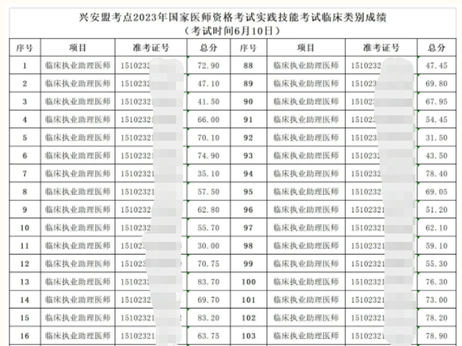 興安盟(6月10日)國(guó)家醫(yī)師資格考試實(shí)踐技能考試成績(jī)