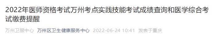 2022年醫(yī)師資格考試萬州考點實踐技能考試成績查詢通知