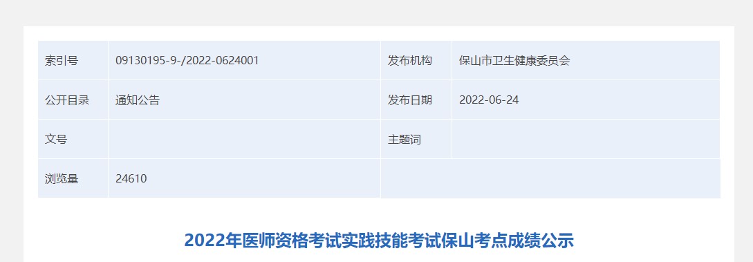 2022年醫(yī)師資格考試實(shí)踐技能考試保山考點(diǎn)成績公示