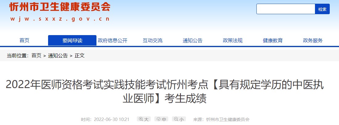2022年醫(yī)師資格考試實(shí)踐技能考試忻州考點(diǎn)具有規(guī)定學(xué)歷的中醫(yī)執(zhí)業(yè)醫(yī)師考生成績已公布,考生可以在國家醫(yī)學(xué)考試網(wǎng)查詢實(shí)踐技能考試成績。醫(yī)學(xué)教育網(wǎng)編輯為您整理了相關(guān)文件,具體內(nèi)容如下,希望可以對您有所幫助:
