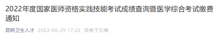 2022年度國家醫(yī)師資格實踐技能考試?yán)ッ骺键c成績查詢和醫(yī)學(xué)綜合考試?yán)U費通知