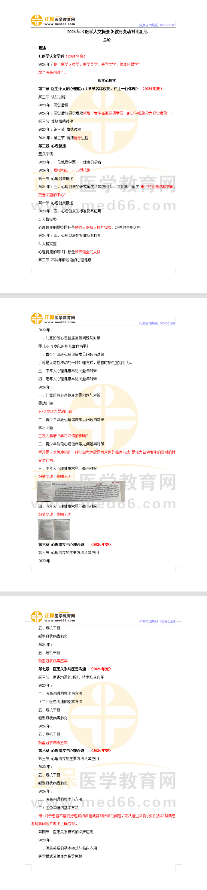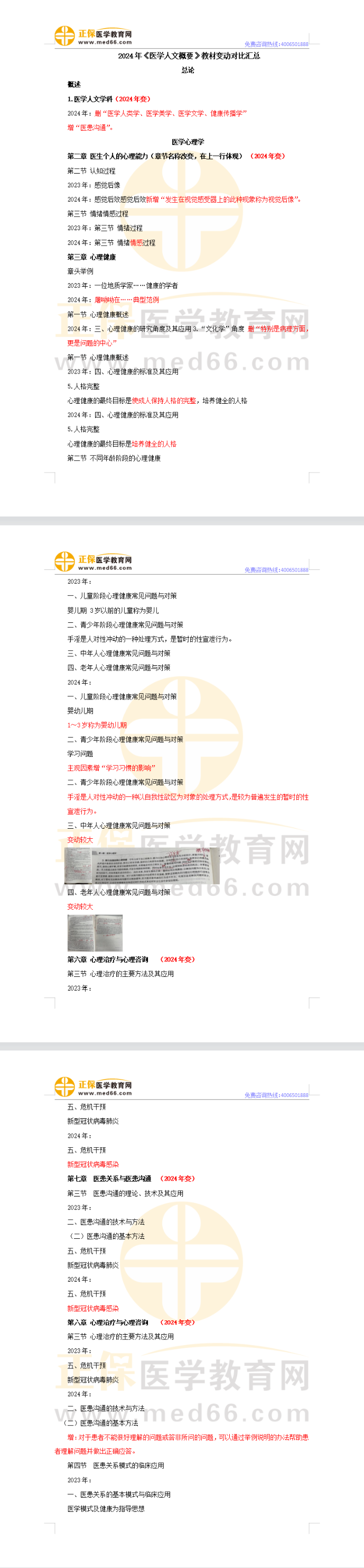 2024年醫(yī)師資格《醫(yī)學(xué)人文概要》教材變動(dòng)匯總(詳細(xì)版)在線預(yù)覽