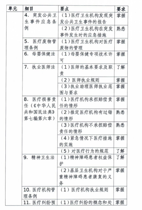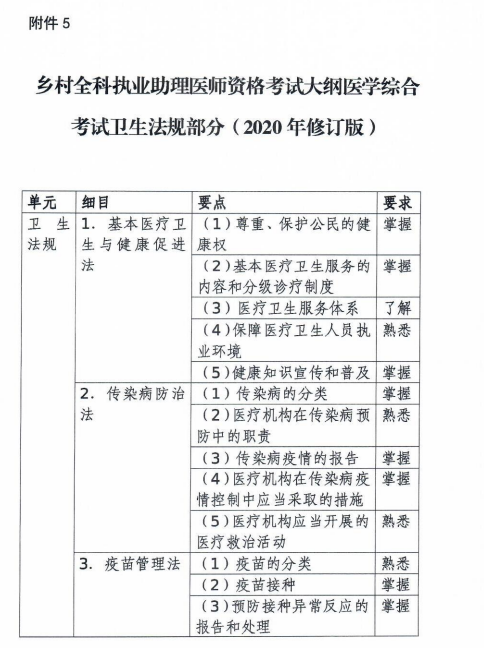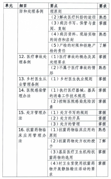 鄉(xiāng)村全科執(zhí)業(yè)助理醫(yī)師醫(yī)師資格考試大綱衛(wèi)生法規(guī)部分(2020修訂版)