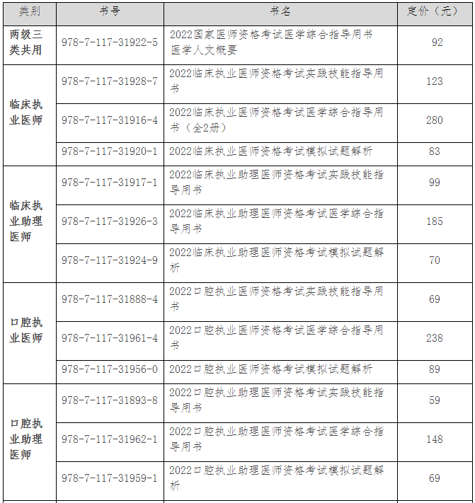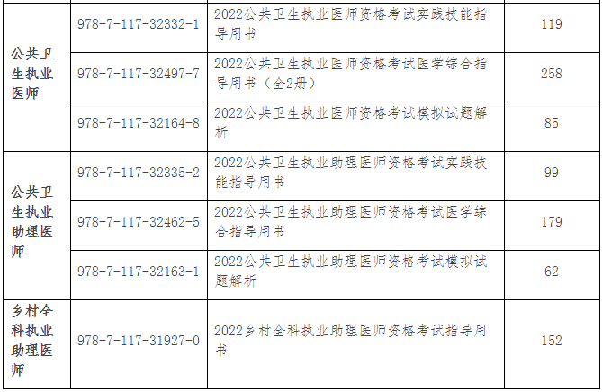 指導用書包括臨床、口腔、公共衛(wèi)生執(zhí)業(yè)醫(yī)師和執(zhí)業(yè)助理醫(yī)師兩級三類的《實踐技能指導用書》《醫(yī)學綜合指導用書》《模擬試題解析》,以及《醫(yī)學人文概要》《鄉(xiāng)村全科執(zhí)業(yè)助理醫(yī)師資格考試指導用書》等,共20種。