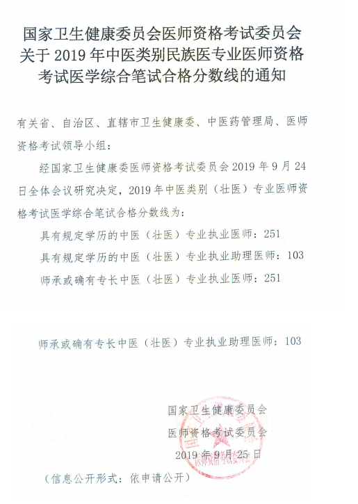 全國(guó)2020年執(zhí)業(yè)/助理醫(yī)師資格證醫(yī)學(xué)綜合筆試考試合格標(biāo)準(zhǔn)