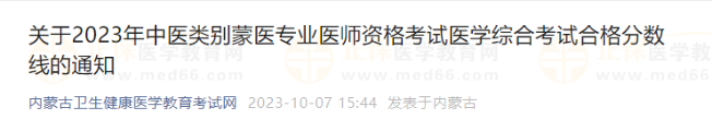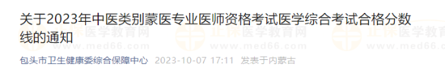 內(nèi)蒙古包頭2023年中醫(yī)類別蒙醫(yī)專業(yè)醫(yī)師資格考試醫(yī)學(xué)綜合考試合格分?jǐn)?shù)線