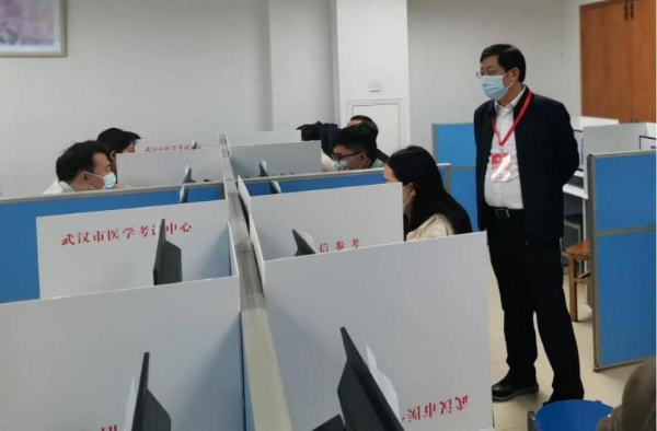 考試期間,武漢市衛(wèi)生健康委員會黨委副書記、副主任彭厚鵬對武漢考點的保密管理、防疫防控、考風(fēng)考紀(jì)、考場運行等進(jìn)行了督查。