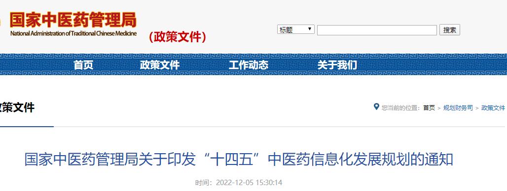 國(guó)家中醫(yī)藥管理局關(guān)于印發(fā)“十四五”中醫(yī)藥信息化發(fā)展規(guī)劃的通知