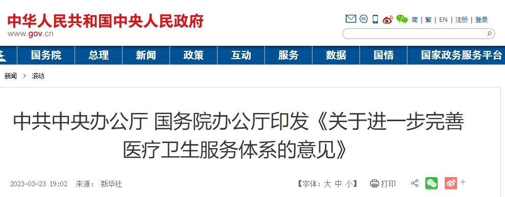新華社北京3月23日電近日,中共中央辦公廳、國(guó)務(wù)院辦公廳印發(fā)了《關(guān)于進(jìn)一步完善醫(yī)療衛(wèi)生服務(wù)體系的意見(jiàn)》,并發(fā)出通知,要求各地區(qū)各部門(mén)結(jié)合實(shí)際認(rèn)真貫徹落實(shí)。