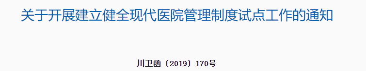 根據(jù)《國(guó)務(wù)院辦公廳關(guān)于建立現(xiàn)代醫(yī)院管理制度的指導(dǎo)意見》(國(guó)辦發(fā)〔2017〕67號(hào))、國(guó)家衛(wèi)生健康委等六部門《關(guān)于開展建立健全現(xiàn)代醫(yī)院管理制度試點(diǎn)的通知》(國(guó)衛(wèi)體改發(fā)〔2018〕50號(hào))以及《四川省人民政府辦公廳關(guān)于建立健全現(xiàn)代醫(yī)院管理制度的實(shí)施意見》(川辦發(fā)〔2018〕39號(hào))等文件精神,為整體推進(jìn)我省現(xiàn)代醫(yī)院管理制度建設(shè),經(jīng)研究,決定開展建立健全現(xiàn)代醫(yī)院管理制度試點(diǎn)。經(jīng)各地各單位推薦,遴選確定了四川大學(xué)華西第二醫(yī)院、成都市第三人民醫(yī)院等43家醫(yī)院作為省級(jí)建立健全現(xiàn)代院管理制度試點(diǎn)醫(yī)院(名單見附件1)?,F(xiàn)將試點(diǎn)工作有關(guān)要求通知如下: