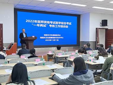 學校按照四川省醫(yī)師資格考試考區(qū)辦公室要求設置考場,負責考前的系統(tǒng)安裝、調試,安排系統(tǒng)管理員參加四川省醫(yī)師資格考試考區(qū)辦公室組織的培訓。11月11日由綿陽市衛(wèi)生健康委員會、綿陽市衛(wèi)生健康信息與技術中心對監(jiān)考人員、系統(tǒng)管理員及相關工作人員進行考務工作培訓。在培訓會上,副校長劉強強調,考試相關責任單位、部門和個人要高度重視,增強責任意識,嚴格執(zhí)行考務操作規(guī)程,嚴肅考風考紀,確保考試安全有序進行,為廣大考生營造溫馨、安全、公正、公平的考試環(huán)境。
