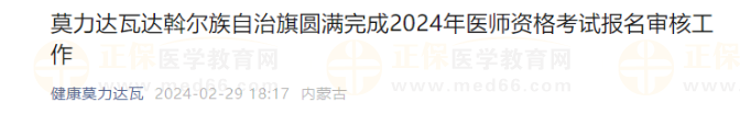 內(nèi)蒙古莫力達(dá)瓦達(dá)斡爾族自治旗圓滿完成2024年醫(yī)師資格考試報名審核工作!醫(yī)學(xué)教育網(wǎng)小編為大家整理了官方通知內(nèi)容如下,請各位通過審核的考生關(guān)注技能繳費通知!