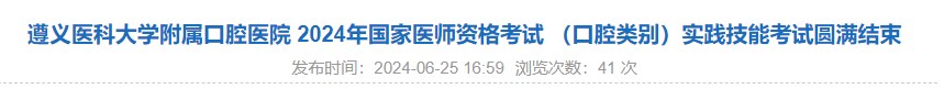 根據(jù)遵義醫(yī)科大學附屬口腔醫(yī)院官方報道,共800余名考生在貴州遵義考點參加2024口腔類別醫(yī)師實踐技能考試。以下為官方通知內(nèi)容: