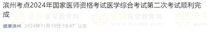 山東濱州考點2024年醫(yī)師資格考試“一年兩試”考試順利完成,共640人考生參加