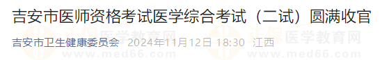 江西吉安市2024年醫(yī)師資格考試醫(yī)學(xué)綜合考試(二試)圓滿(mǎn)收官!以下為吉安衛(wèi)健委官方報(bào)道: