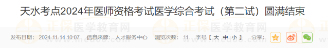 - · 甘肅天水考點2024年醫(yī)師資格考試“一年兩試”圓滿結束724名考生