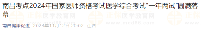 江西南昌考點2024年國家醫(yī)師資格考試醫(yī)學綜合考試“一年兩試”圓滿落幕!以下為南昌衛(wèi)健委官方報道: