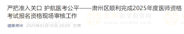 甘肅肅州區(qū)順利完成310名考生2025年度醫(yī)師資格考試報(bào)名資格現(xiàn)場(chǎng)審核工作,官方通知如下: