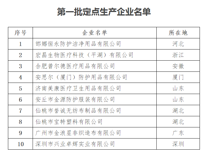 附件:第一批定點生產(chǎn)企業(yè)名單