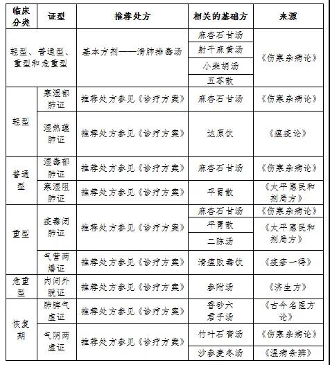 各推薦處方的基礎方及其來源