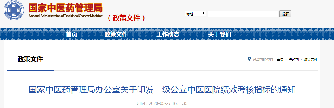 - · 國家中醫(yī)藥管理局關于二級公立中醫(yī)醫(yī)院績效考核指標