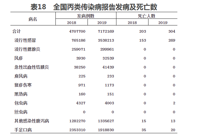 2019年,全國丙類傳染病報(bào)告發(fā)病率為513.6/10萬,死亡率為0.02/10萬。