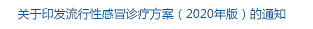 - · 國家衛(wèi)健委修訂流行性感冒診療方案(2020年版)