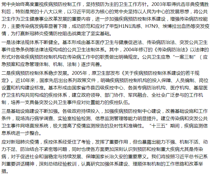 國家關(guān)于加強疾病預(yù)防控制體系建設(shè)提升衛(wèi)生應(yīng)急能力的建議答復(fù)