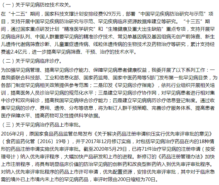 (一)關(guān)于制定“罕見病國(guó)家行動(dòng)計(jì)劃”和《罕見病防治法》。