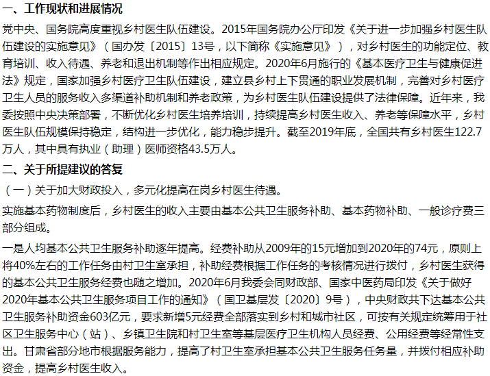 官方答復(fù)關(guān)于提高鄉(xiāng)村醫(yī)生待遇穩(wěn)定鄉(xiāng)村醫(yī)生隊(duì)伍的建議!