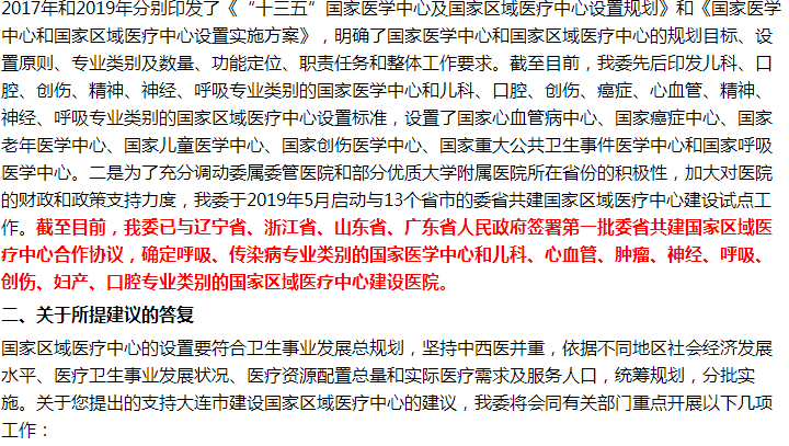 國家衛(wèi)健委答復(fù)關(guān)于支持大連市建設(shè)國家區(qū)域醫(yī)學(xué)中心的建議!