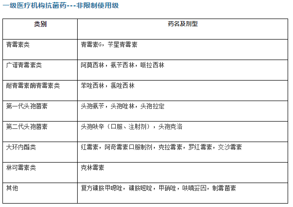 一級(jí)醫(yī)療機(jī)構(gòu)抗菌藥---非限制使用級(jí)