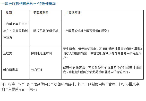 一級(jí)醫(yī)療機(jī)構(gòu)抗菌藥---特殊使用級(jí)