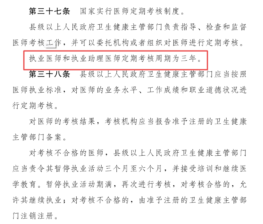 新版執(zhí)業(yè)醫(yī)師法執(zhí)業(yè)醫(yī)師和執(zhí)業(yè)助理醫(yī)師定期考核周期改為三年!