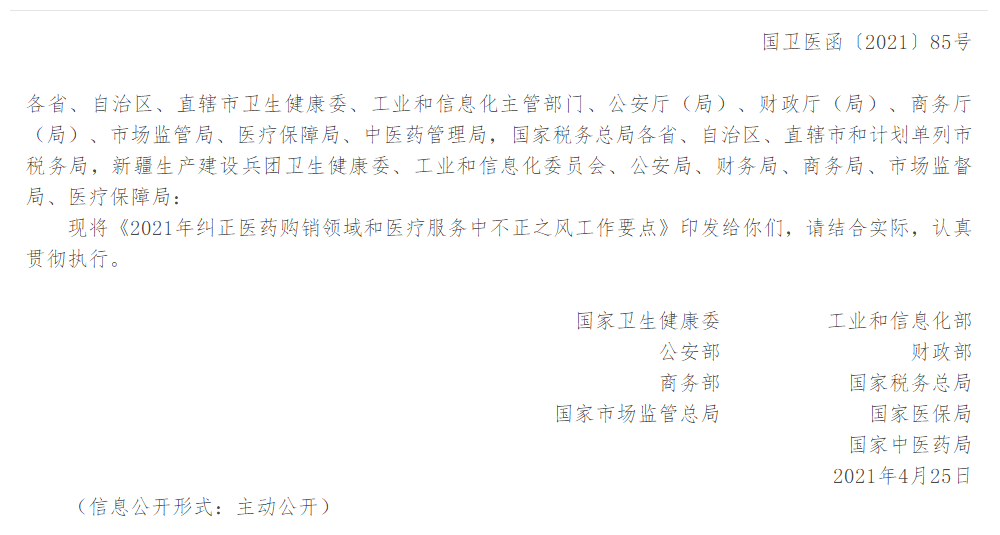 官方全文:國(guó)家衛(wèi)健委發(fā)布2021年糾正醫(yī)藥購(gòu)銷(xiāo)領(lǐng)域和醫(yī)療服務(wù)中不正之風(fēng)工作要點(diǎn)