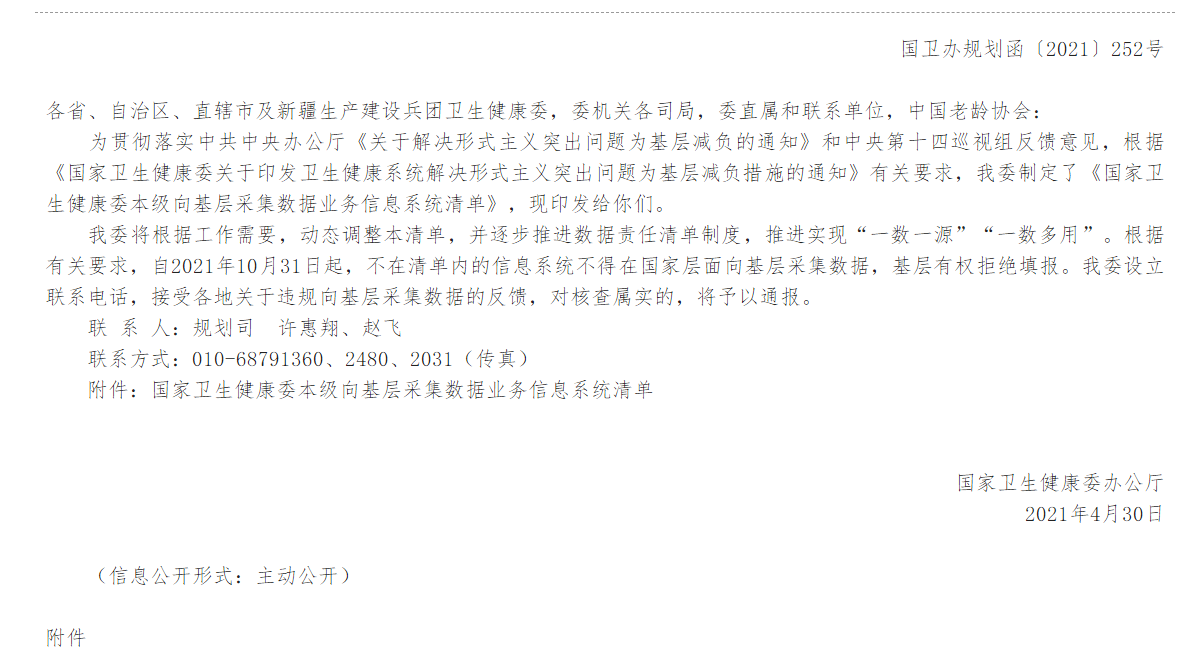國家衛(wèi)生健康委本級向基層采集數(shù)據(jù)業(yè)務(wù)信息系統(tǒng)清單(表)