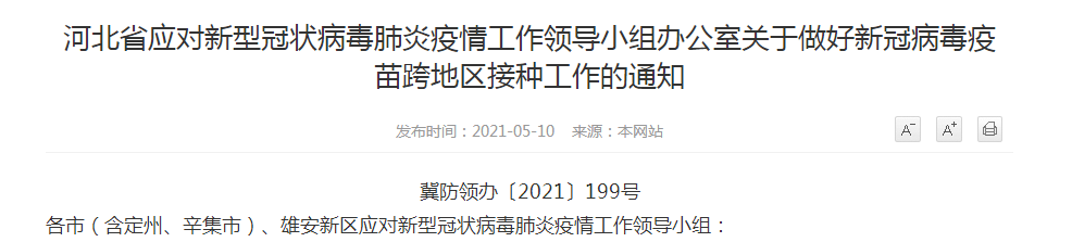 河北省關(guān)于做好新冠病毒疫苗跨地區(qū)接種工作的通知