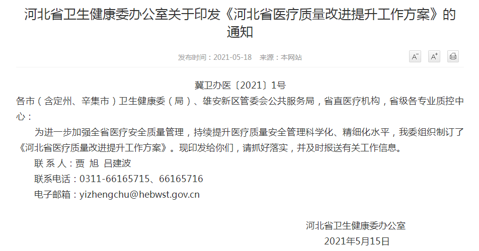 河北省發(fā)布醫(yī)療質(zhì)量改進提升工作方案(全文)