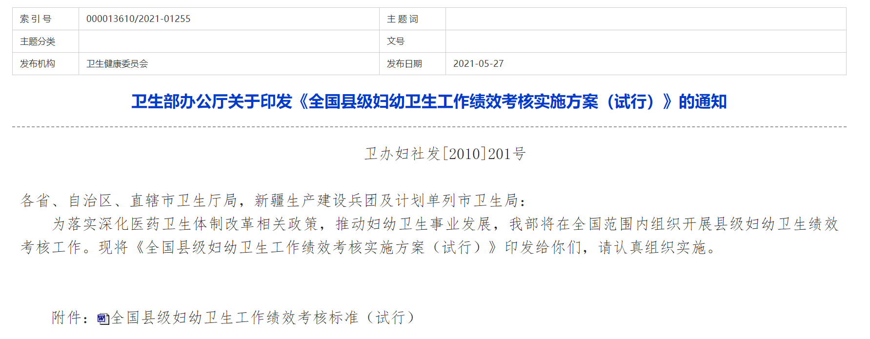 全國(guó)縣級(jí)婦幼衛(wèi)生工作績(jī)效考核實(shí)施方案(試行)